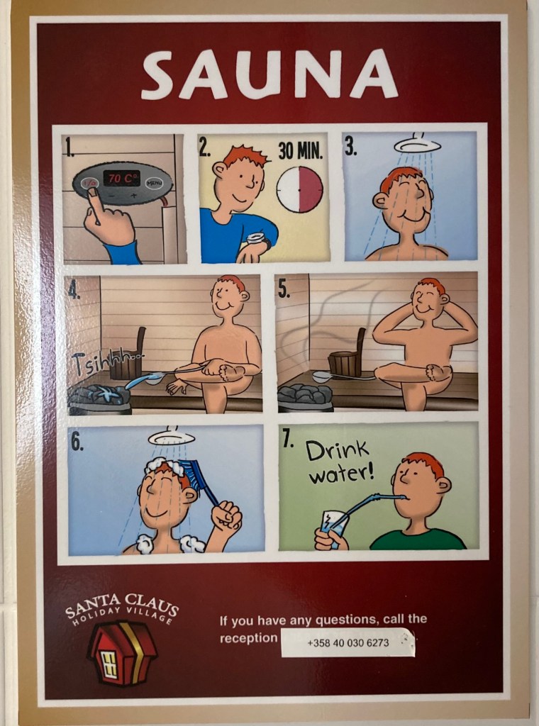 1. so many comments, but I’ll prioritize. I just want to say thank you to the artist from the sauna 101 poster for keeping the dude’s leg crossed. The last thing i need is some Fin mansplaining a sauna to me