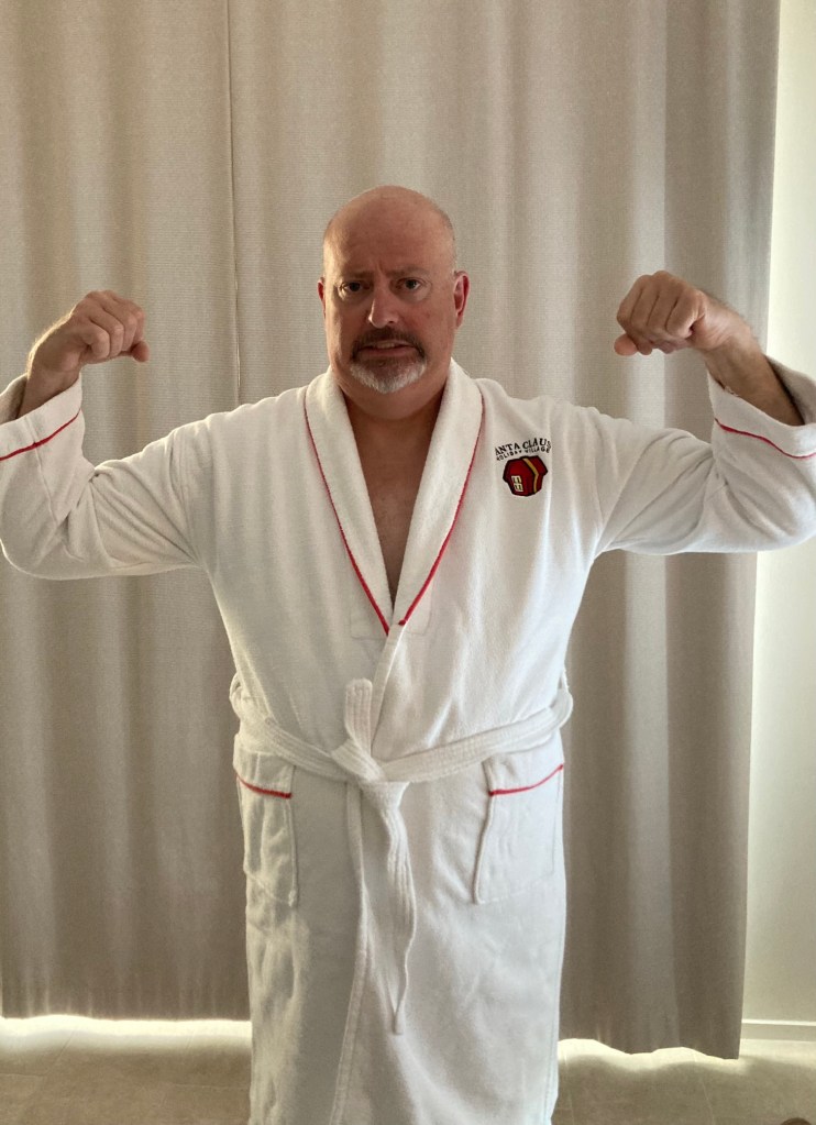 Yesterday, we flew 500 miles north of Helsinki to Rovaniemi. Rovaniemi (Finnish for “Ya, we sure get a lot of fucking snow,”) is the “official” home of Santa Claus. Here, just above the Arctic Circle, the sun will not set for another 30 days, so we can trade the garlic suppositories for a bottle of SPF 50, and we get to meet Santa. Win win.