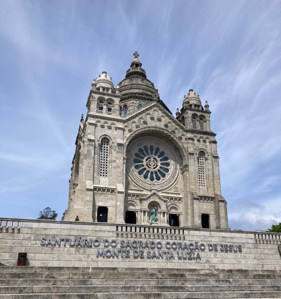 The Sanctuary of the Sacred Heart of Jesus is an architecturally impressive church perched high atop Viana do Castelo on the Mount of St. Luzia. From anywhere down in town, you can look up and see the church staring down at you like a medieval gargoyle or a sexually repressed, junior high dance chaperone. It’s both inspiring and terrifying, much like the Catholic church in general.